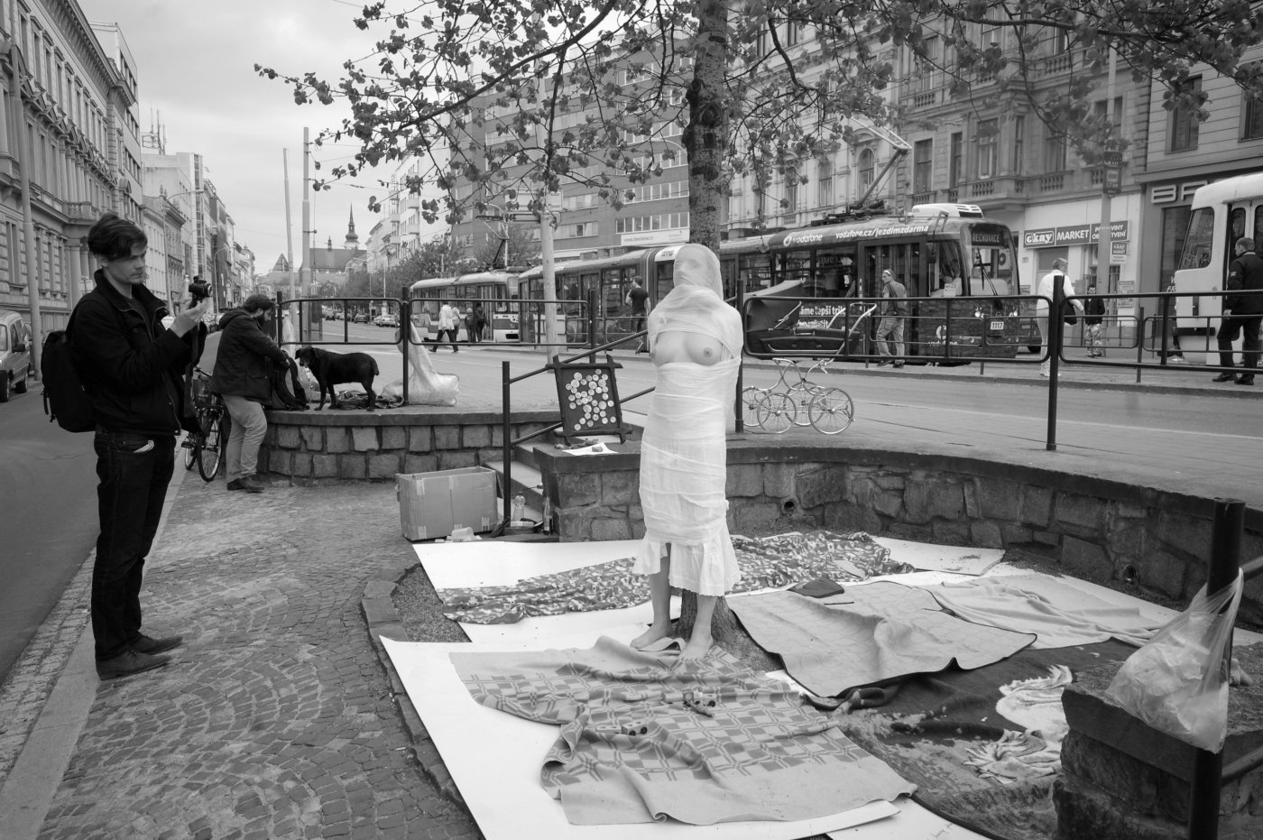 Stát přivázaná a nahá ke stromu mi evokovalo pocity blízké lynčování, který je uvázán u kůlu a vydán na milost i nemilost řádícím bestiím... Z této zkušenosti vyvozuji, že stromy jsou nám opravdu vydané napospas a jejich vnitřní emoční tělo je záměrně velmi zpomalené, protože jinak by museli vytrhnout nohy (kořeny) ze země a utíkat a utíkat, před tvorem, jako je člověk. Celá akce byla pro mne uspokojivá, už tím, že jsem to neměla vyzkoušené. Možná jsem se měla zkusit závěrem prodírat ven. i přesto, že jsem byla po dohodnutém čase odvázaná, necítila jsem se potom stabilizovaně. Báseň, kterou jsem záhy sepsala, zůstala v tu chvíli jediným slovním vyjádřením, kterého jsem byla krátce po akci schopna. Za Ištabelu v Jablonci 28.6. 2017